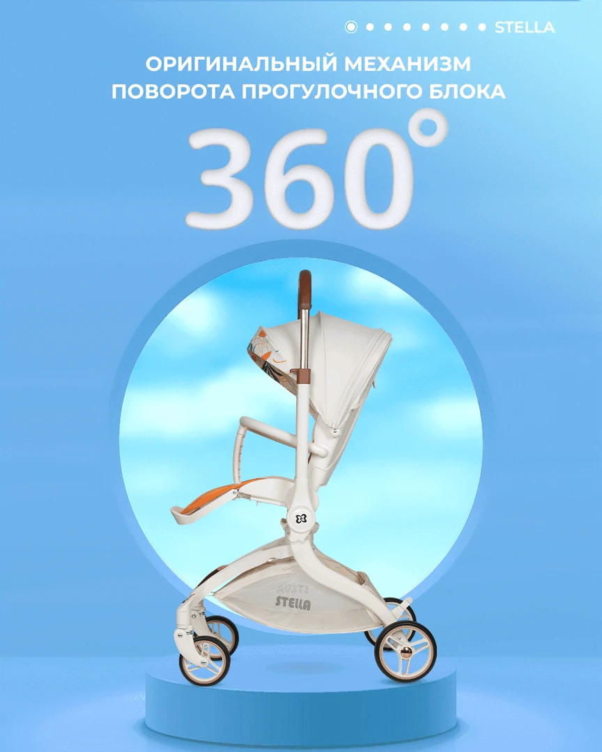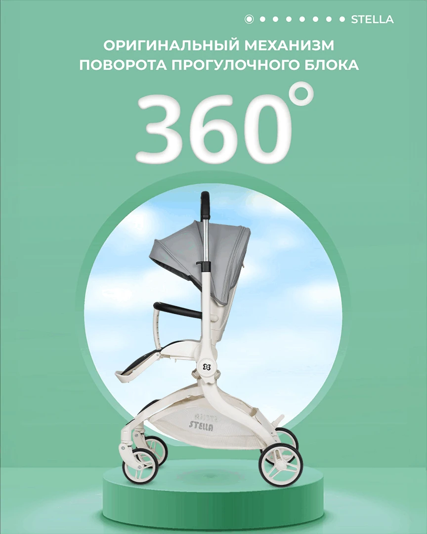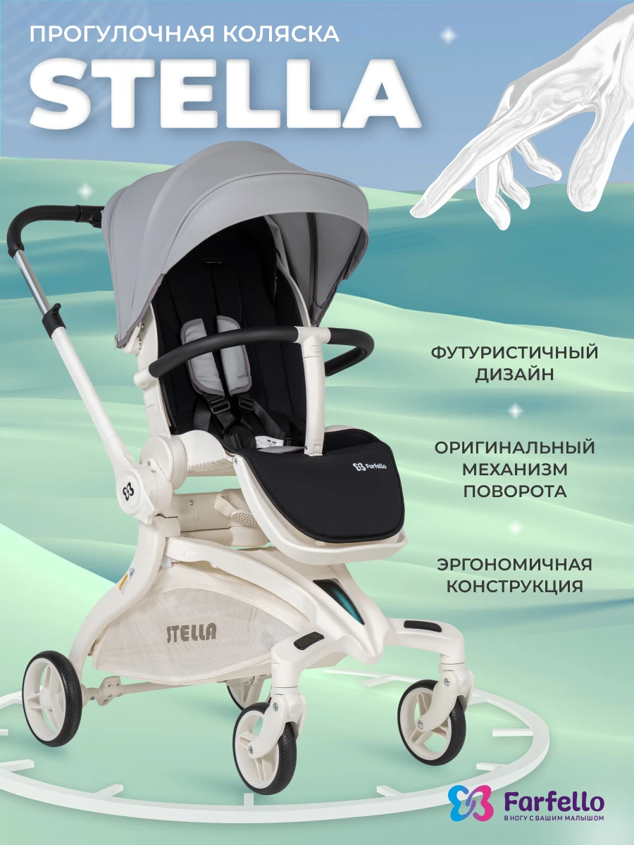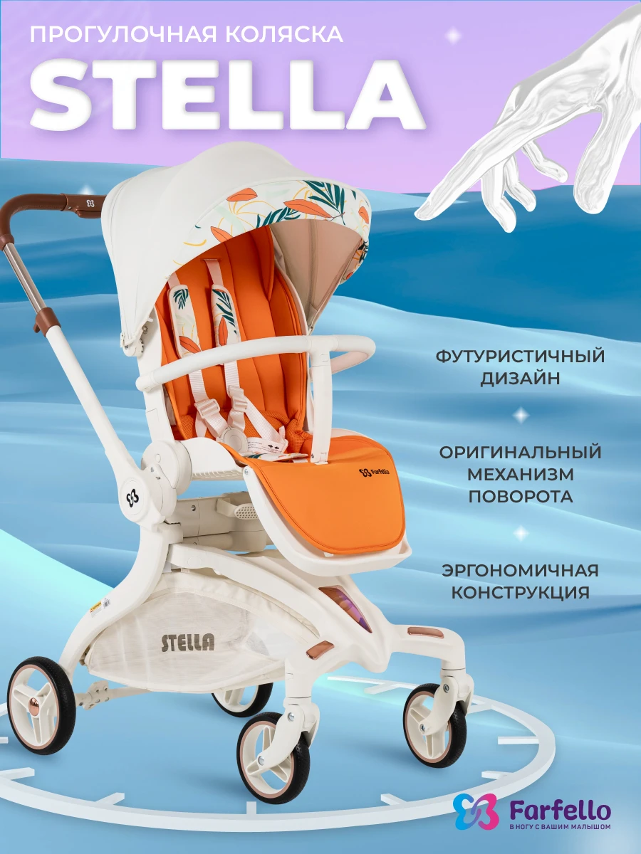Будущее наступило! Футуристическая летняя прогулочная коляска Farfello STELLA, с которой вы почувствуете комфорт! Уникальная коляска с оригинальным механизмом поворота прогулочного блока на 360°. Крутите сиденье, а не перекидывайте ручку. Выбираете удобное положение "малыш смотрит на маму" или "смотрит вперед по движению", при этом колеса остаются на месте: передние поворотные – управляют движением, а большие задние – повышают проходимость. Максимум комфорта!