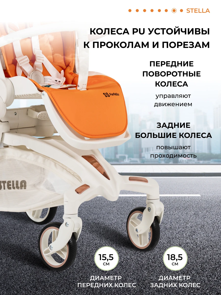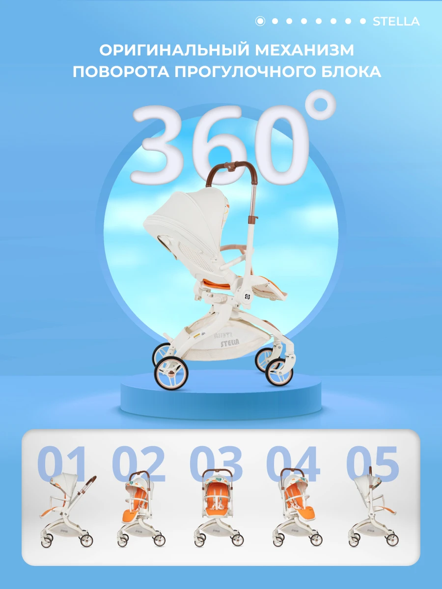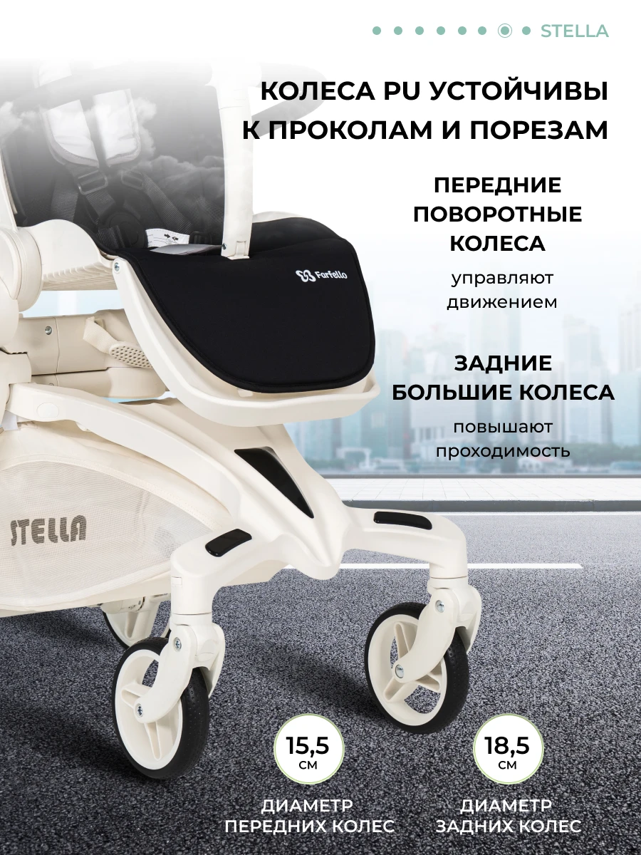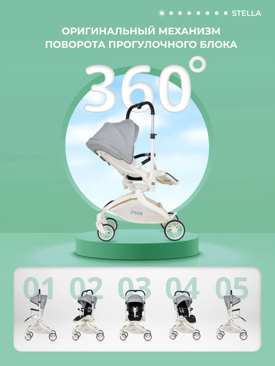 Будущее наступило! Футуристическая летняя прогулочная коляска Farfello STELLA, с которой вы почувствуете комфорт! Уникальная коляска с оригинальным механизмом поворота прогулочного блока на 360°. Крутите сиденье, а не перекидывайте ручку. Выбираете удобное положение "малыш смотрит на маму" или "смотрит вперед по движению", при этом колеса остаются на месте: передние поворотные – управляют движением, а большие задние – повышают проходимость. Максимум комфорта!
