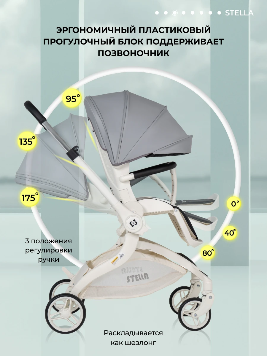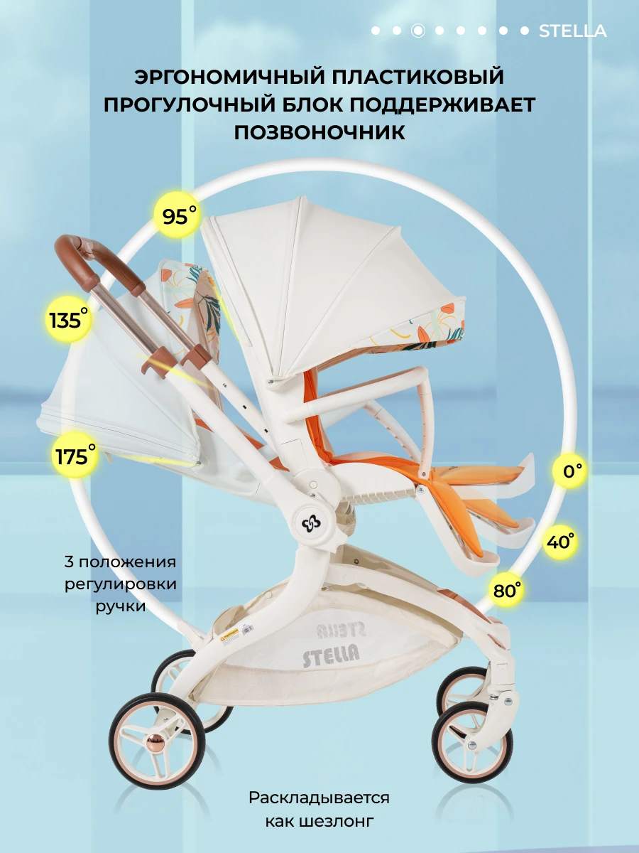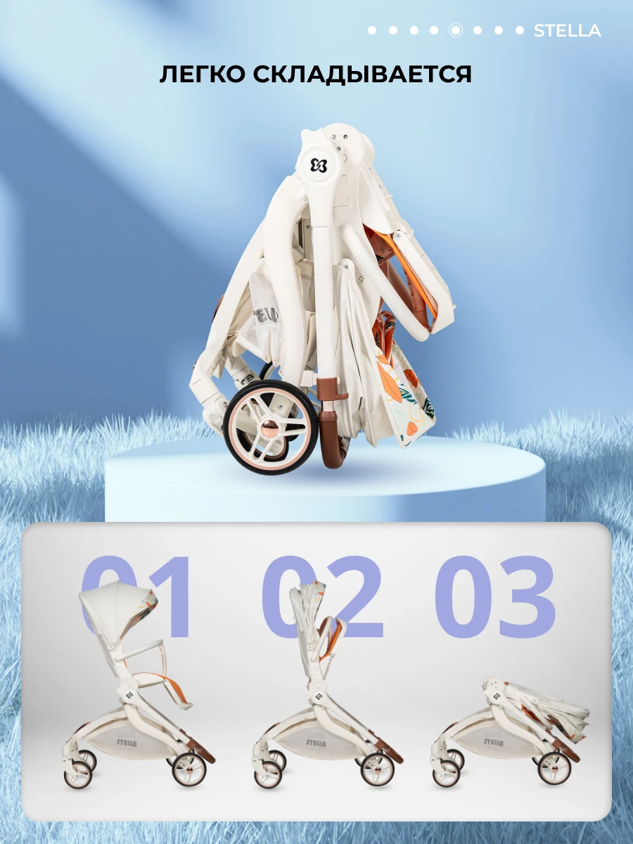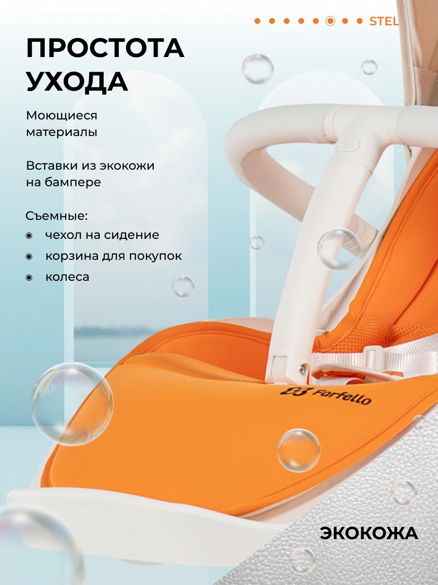 Будущее наступило! Футуристическая летняя прогулочная коляска Farfello STELLA, с которой вы почувствуете комфорт! Уникальная коляска с оригинальным механизмом поворота прогулочного блока на 360°. Крутите сиденье, а не перекидывайте ручку. Выбираете удобное положение "малыш смотрит на маму" или "смотрит вперед по движению", при этом колеса остаются на месте: передние поворотные – управляют движением, а большие задние – повышают проходимость. Максимум комфорта!