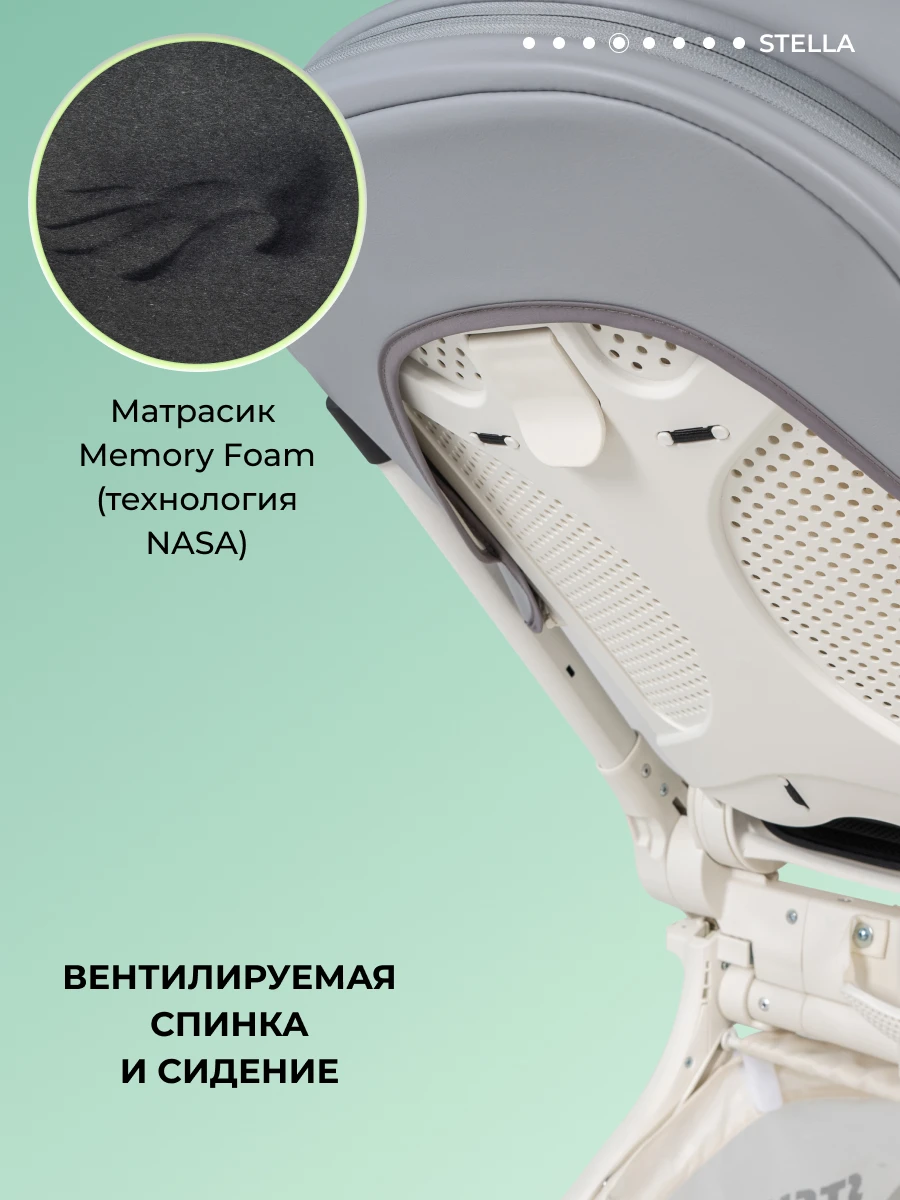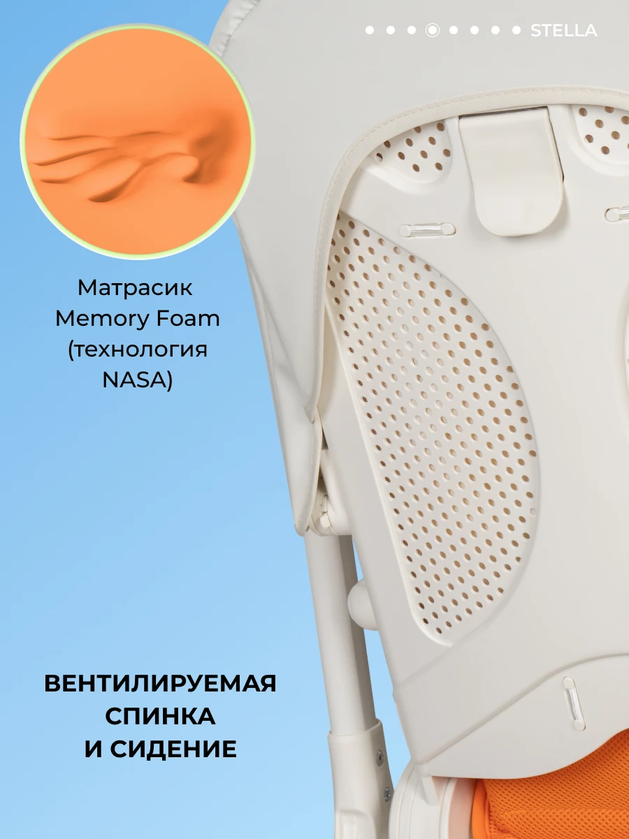 • Эргономичный пластиковый прогулочный блок поддерживает позвоночник. Вентилируемая спинка особенно удобна при длительных прогулках и в жару. Механический наклон спинки возможен в 3-х положениях: сидя (95°), полулёжа (135°) и лёжа (175°).