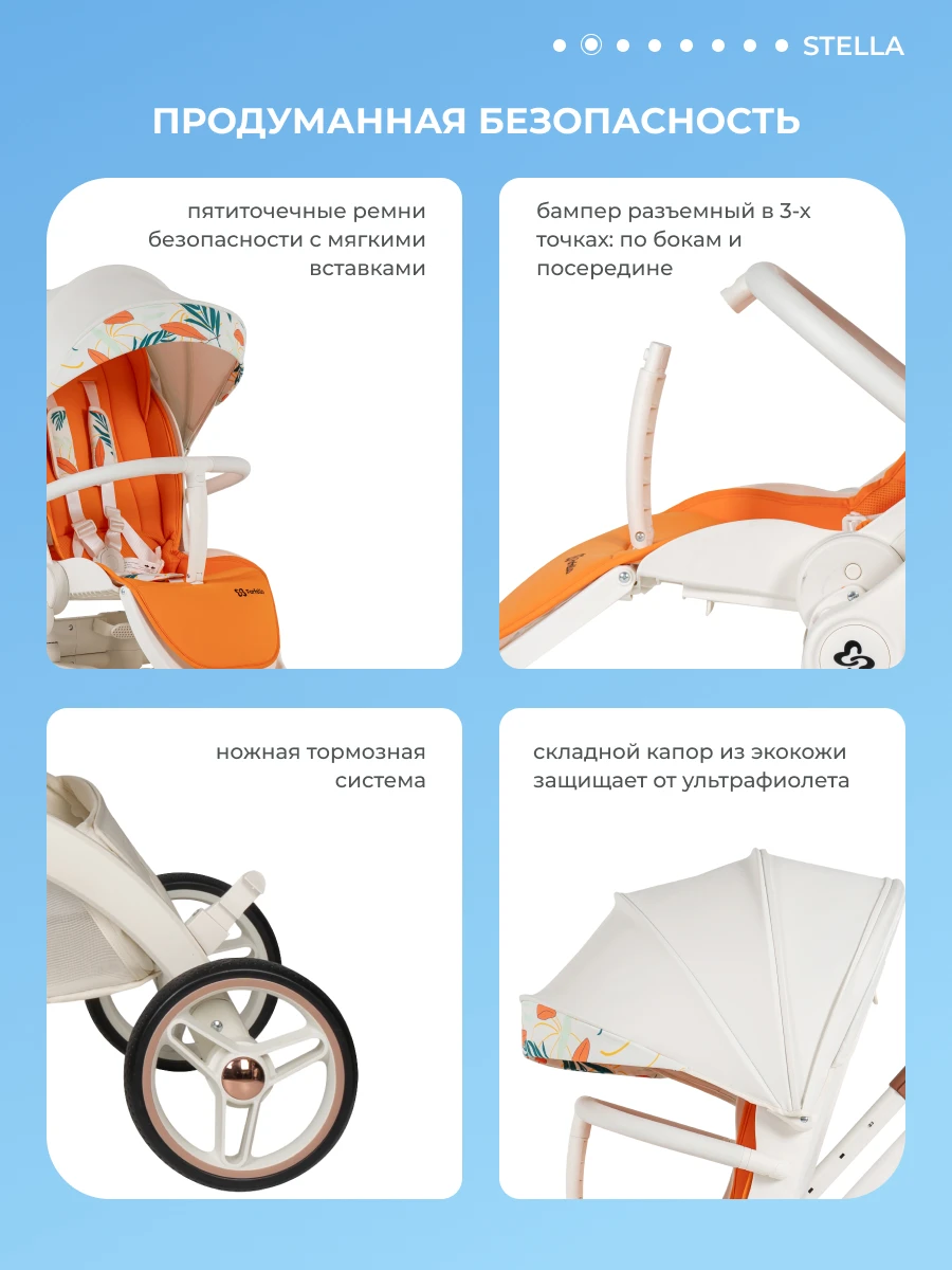 • Коляска выпускается в двух вариантах: белоснежная с оранжевым и благородный монохром.
