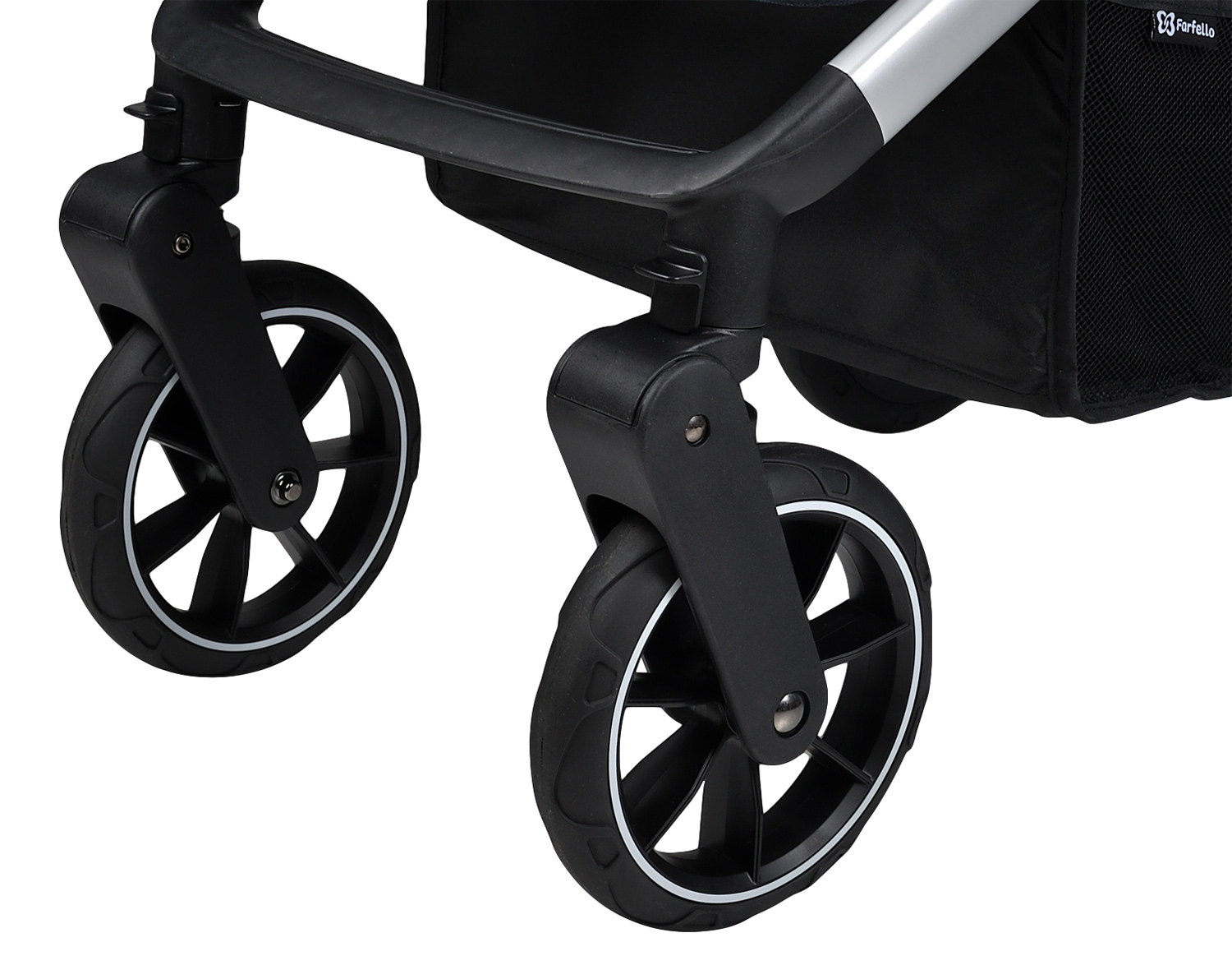 - колеса PU с протектором, плавны в ходу, не шумят при движении, устойчивы к повреждениям, не требуют подкачки. Увеличенные в диаметре задние колеса снимаются, чем значительно облегчают уход за ними после прогулок. Маневренности в движении добавляют вращающиеся на 360° передние колеса с функцией фиксации;