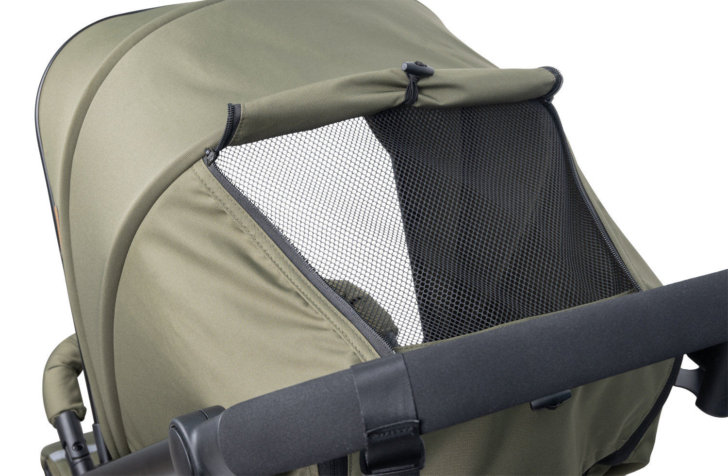 - в капюшоне предусмотрено смотровое окошко на молниях, а также окно для проветривания с москитной сеткой;