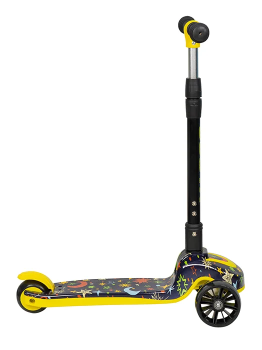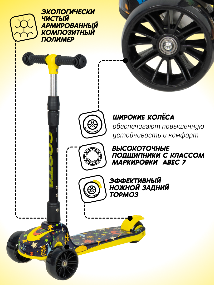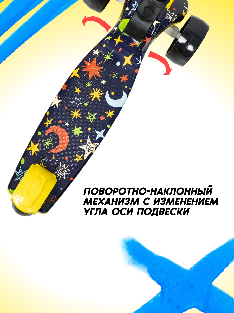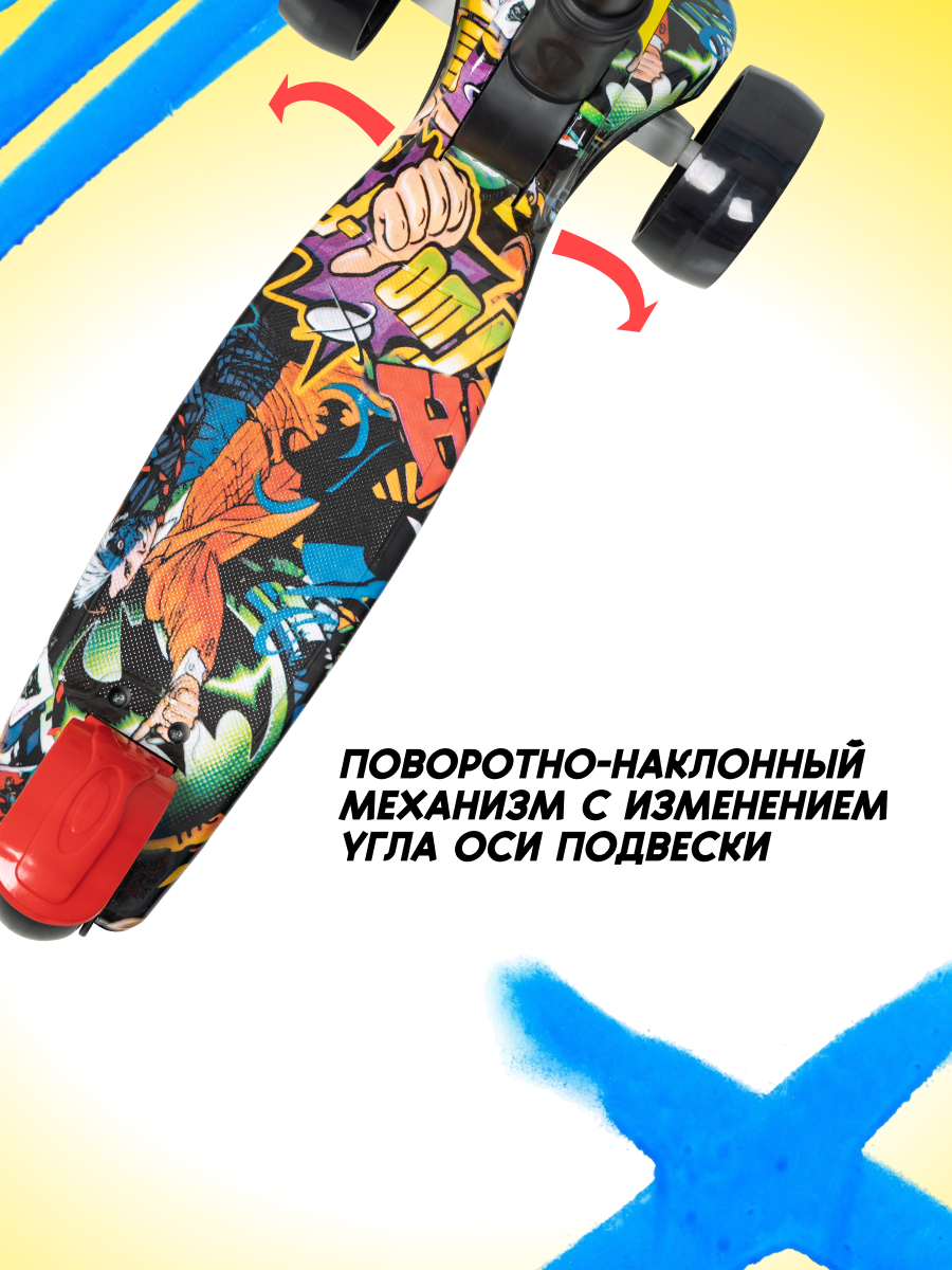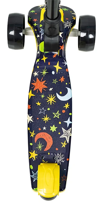Cамокат меняет направление за счет наклона рукоятки в нужную сторону. Широкая платформа позволит ребёнку поставить обе ноги на самокат.