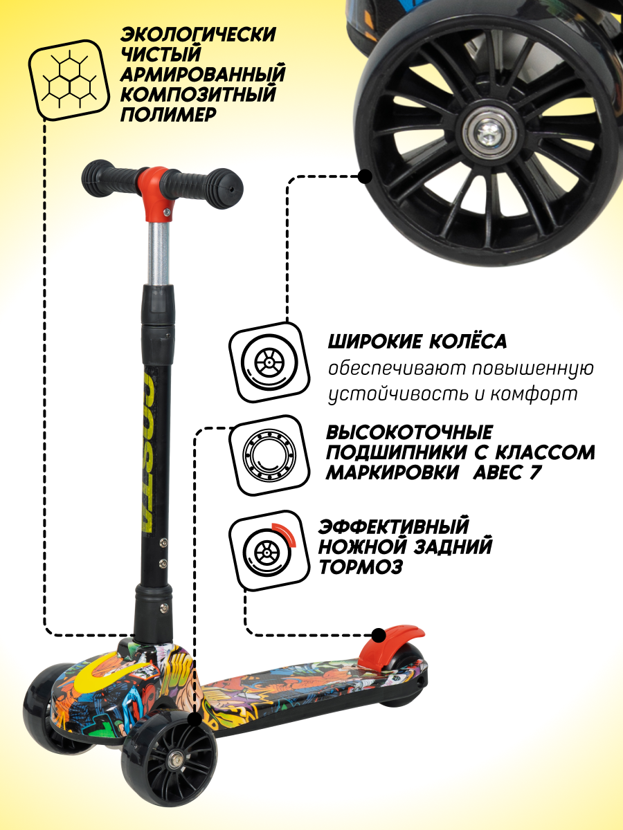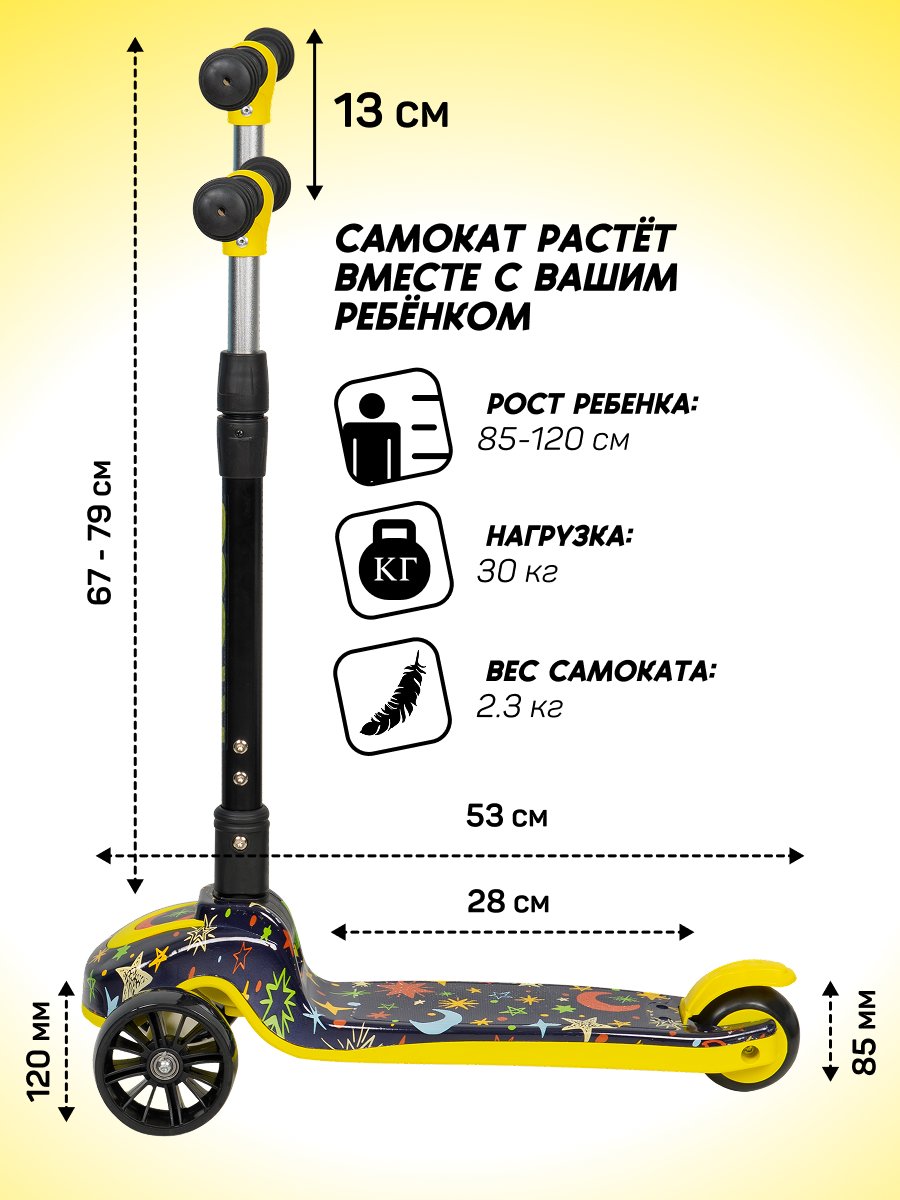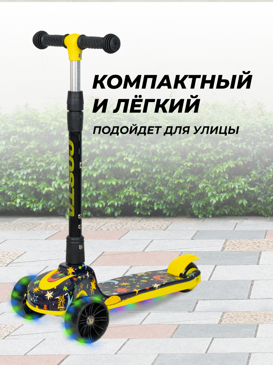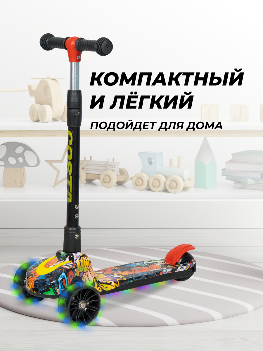 Детский самокат со светящимися колесами AB-13, растет вместе с ребенком и прослужит долго. Самокат помогает развивать координацию и рефлекторные способности ребёнка.