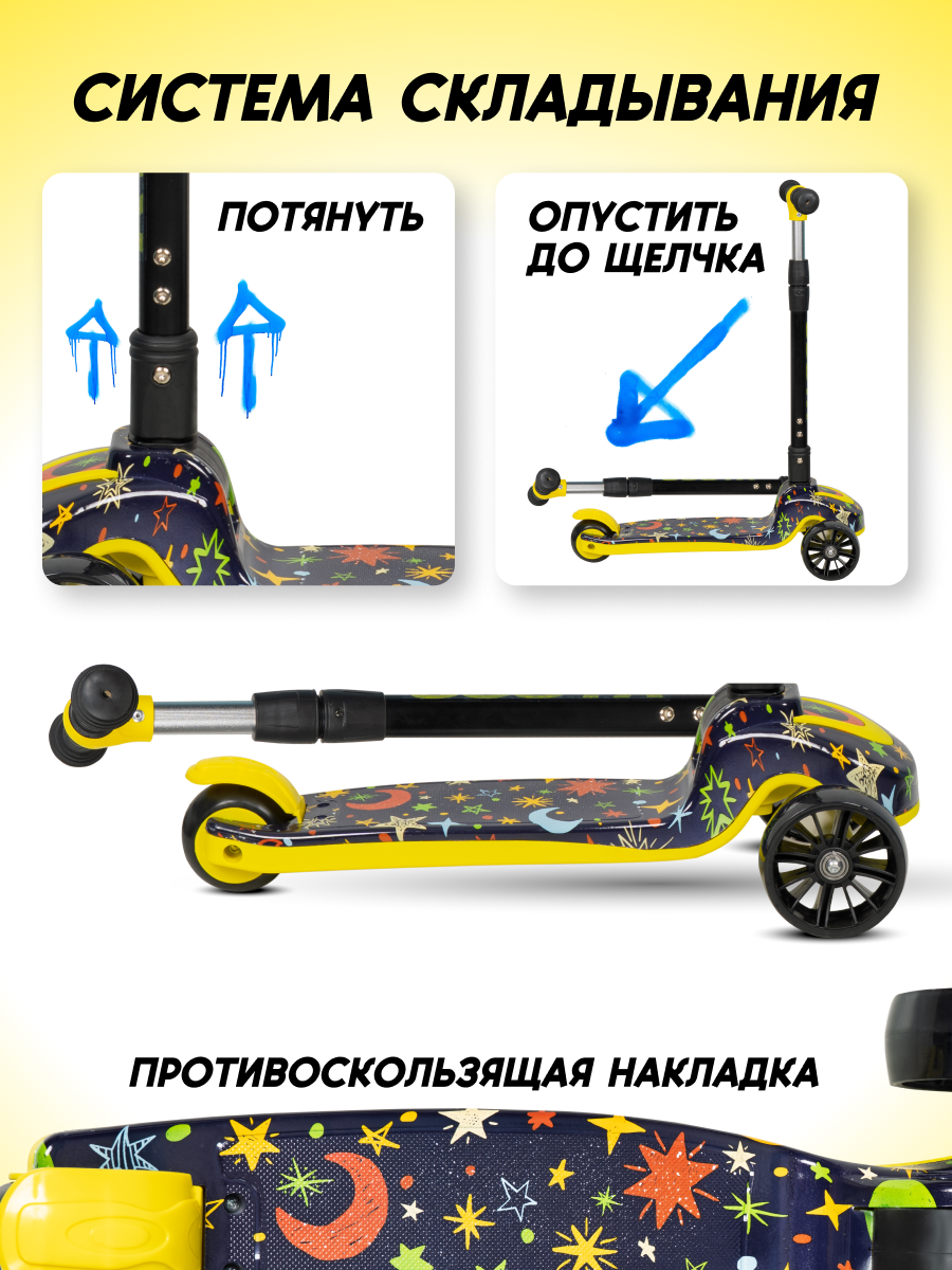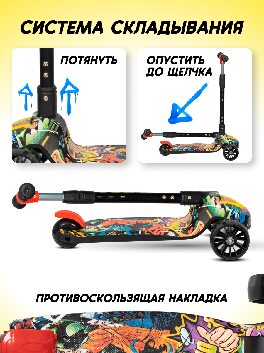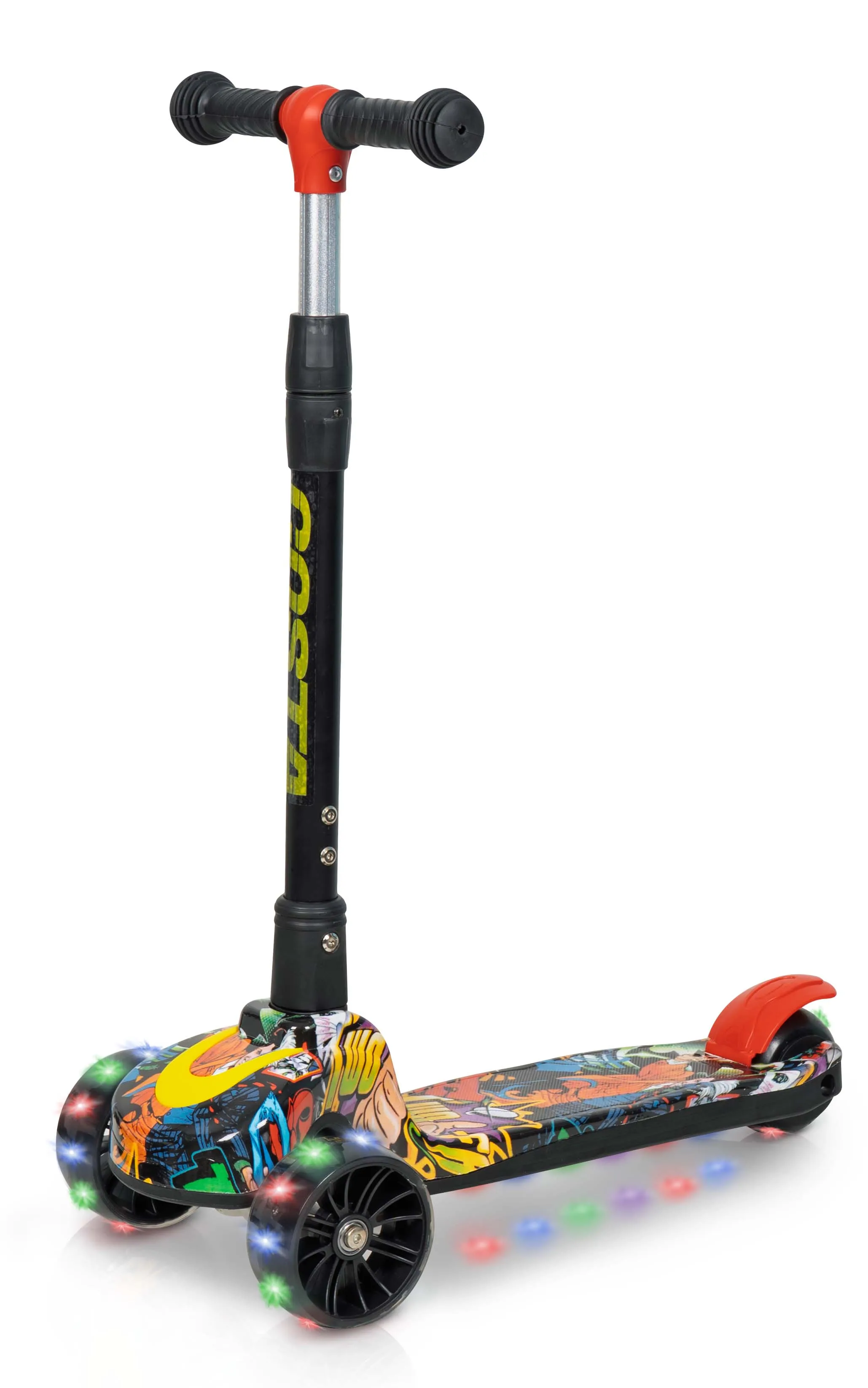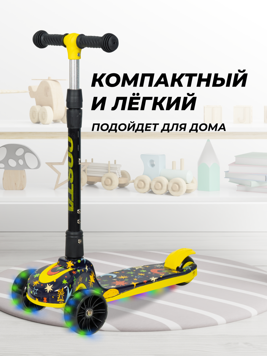 Детский самокат со светящимися колесами AB-13, растет вместе с ребенком и прослужит долго. Самокат помогает развивать координацию и рефлекторные способности ребёнка.
